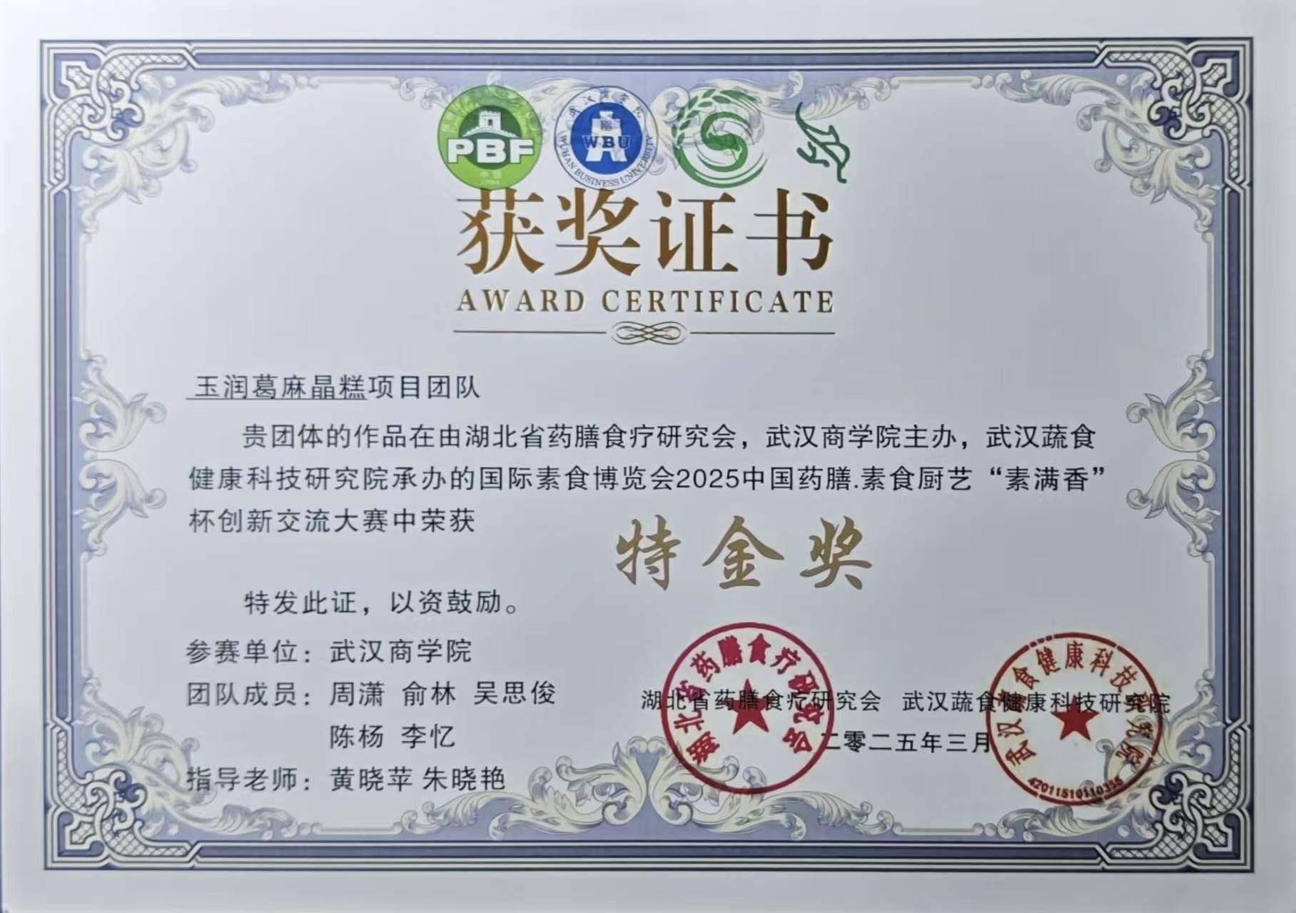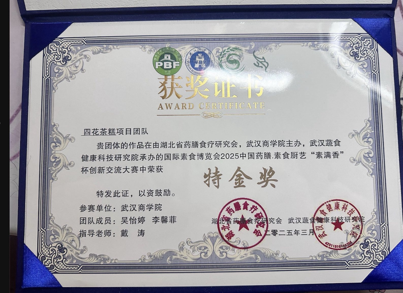 由吴怡婷、李馨菲组成的四花茶糕项目团队在戴涛老师的指导下斩获特金奖。同样,由郭洁宇、张梦婷、潘佳倩、彭振东组成的浮香凝雪盏项目团队在王媛媛、董红兵老师的指导下夺得特金奖,玉润葛麻晶糕项目团队成员周潇、俞林、吴思俊、陈杨、李忆,在指导老师黄晓苹、朱晓艳的助力下,也成功捧起特金奖奖杯。由袁安妮、丁慧、马玉炎、郑梓良组成的素界黑钻•菌养新生项目团队在佘文青、戴涛老师的指导下表现出色,获得金奖,同时,轻谷桃桃魔法盏项目团队成员张雯嘉、陈盈盈在指导老师卢烁的带领下,也荣获金奖。