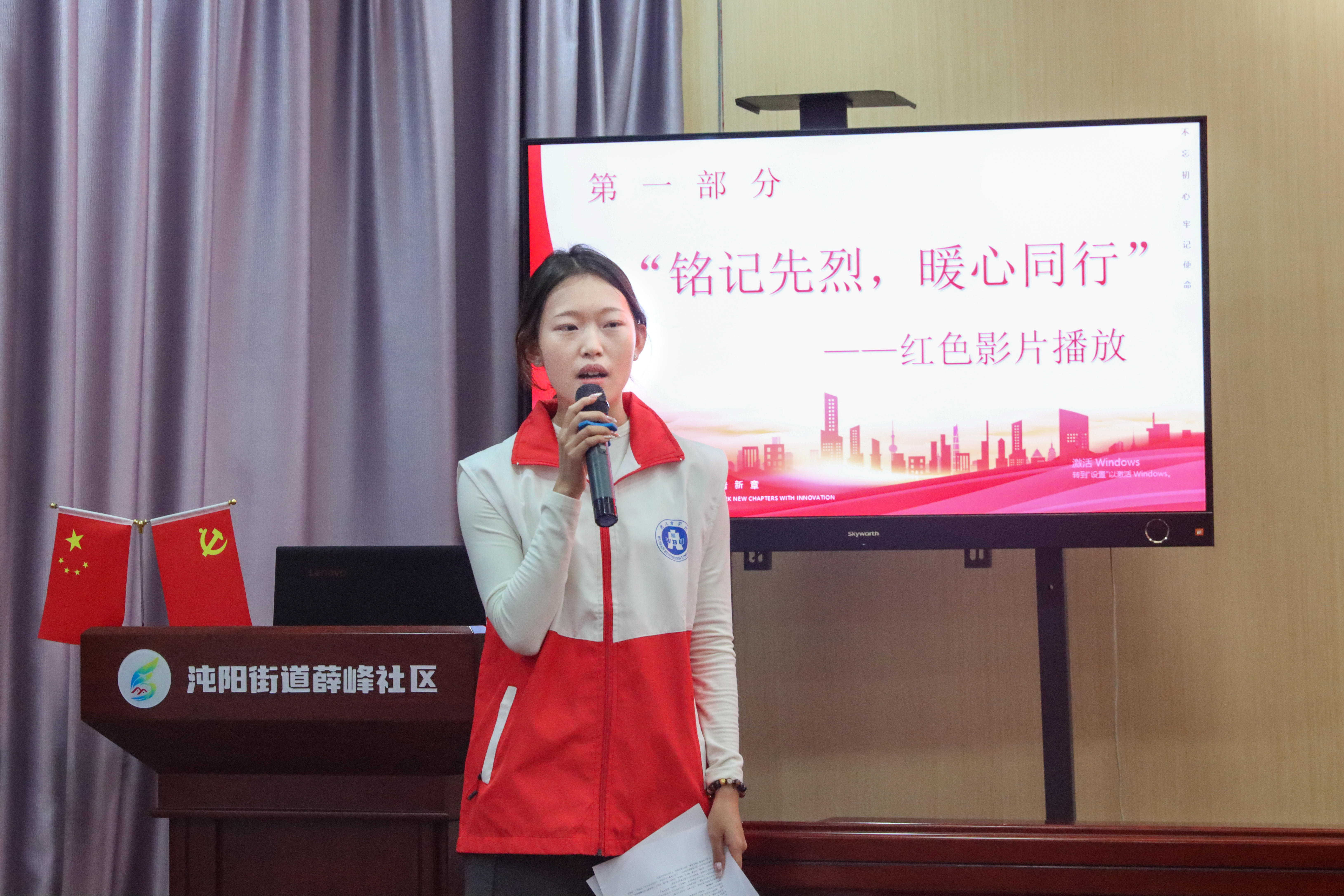 接着,薛峰社区的盛忠保、王忠舜两位老党员寄语新青年,要做“脚下有根”的人,不忘历史;要做“眼里有光”的人,坚定信念;要做“肩上有担”的人,砥砺前行。同学们在老党员的寄语中,汲取奋进力量,传承红色基因,坚定信念。