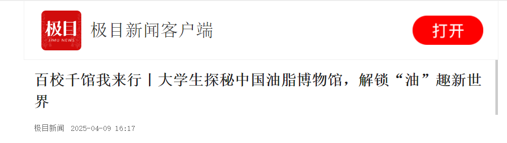 探寻油脂历史,领悟产业变迁,同学们纷纷表示此次研学收获满满。“从来自5000多年前的碳化稻开始,到见证近代时期榨油炼油工艺的成熟,再到现代各类油脂制品走入千家万户,我深刻领略了‘一粒油脂’的前世今生。这次参观不仅丰富了知识,更让我领悟了文明传承的力量。期待以后还能有机会参加游学博物馆的活动。”2024级工商管理学院的田滕子说。