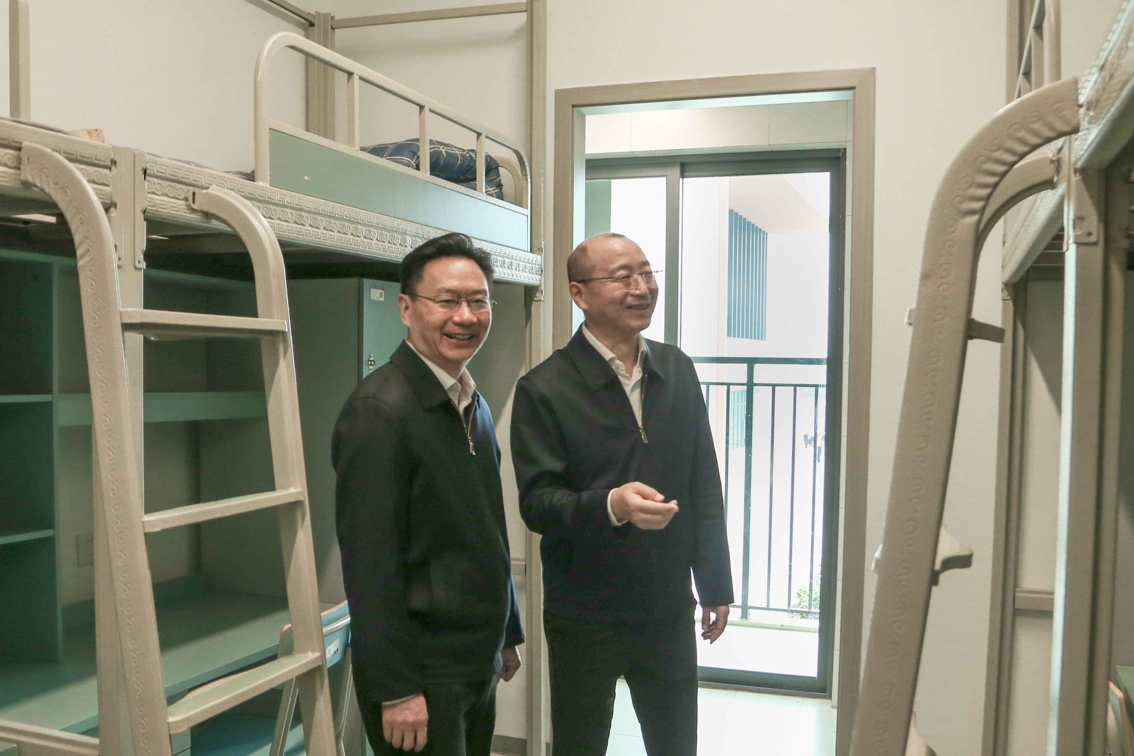 “当前建设进度如何?是否存在需要协调解决的难点?各部门要加强联动,确保食堂、宿舍与教学区同步交付,不影响开学使用。”孟武康一行在调研新校区食堂时听取了对消防设施、燃气管道、通风系统的规划汇报,在宿舍对已建成的水电线路、家具质量、独立卫浴设施进行检查。