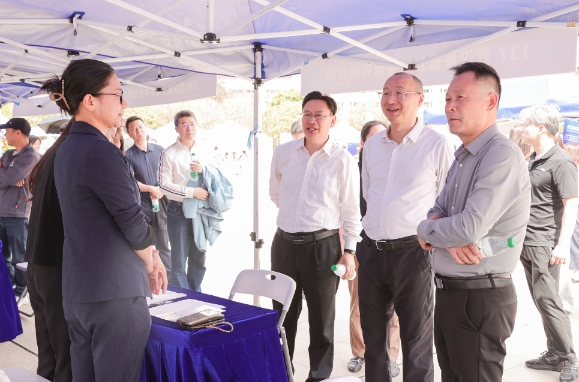 招聘会现场,校党委书记孟武康、校长彭瑜带队查看现场情况。孟武康、彭瑜对来校开展招聘工作的企业表示欢迎,了解企业招聘的用人需求和反馈,与各学院、部分职能部门负责人现场交流,一起听取同人单位对学校人才培养的意见和建议。