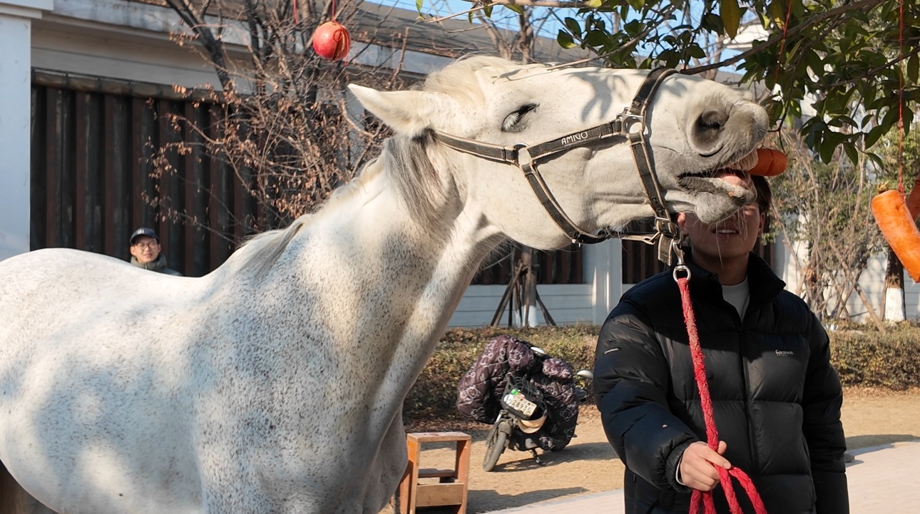 “今天是小年,我们想给马儿一些特别的体验。”在同学们的装点下,马房里贴上了春联,挂上了喜气洋洋的红灯笼,大二学生陈宇琦介绍,马儿十分通人性,愉悦的节日氛围也能够传递给马儿。