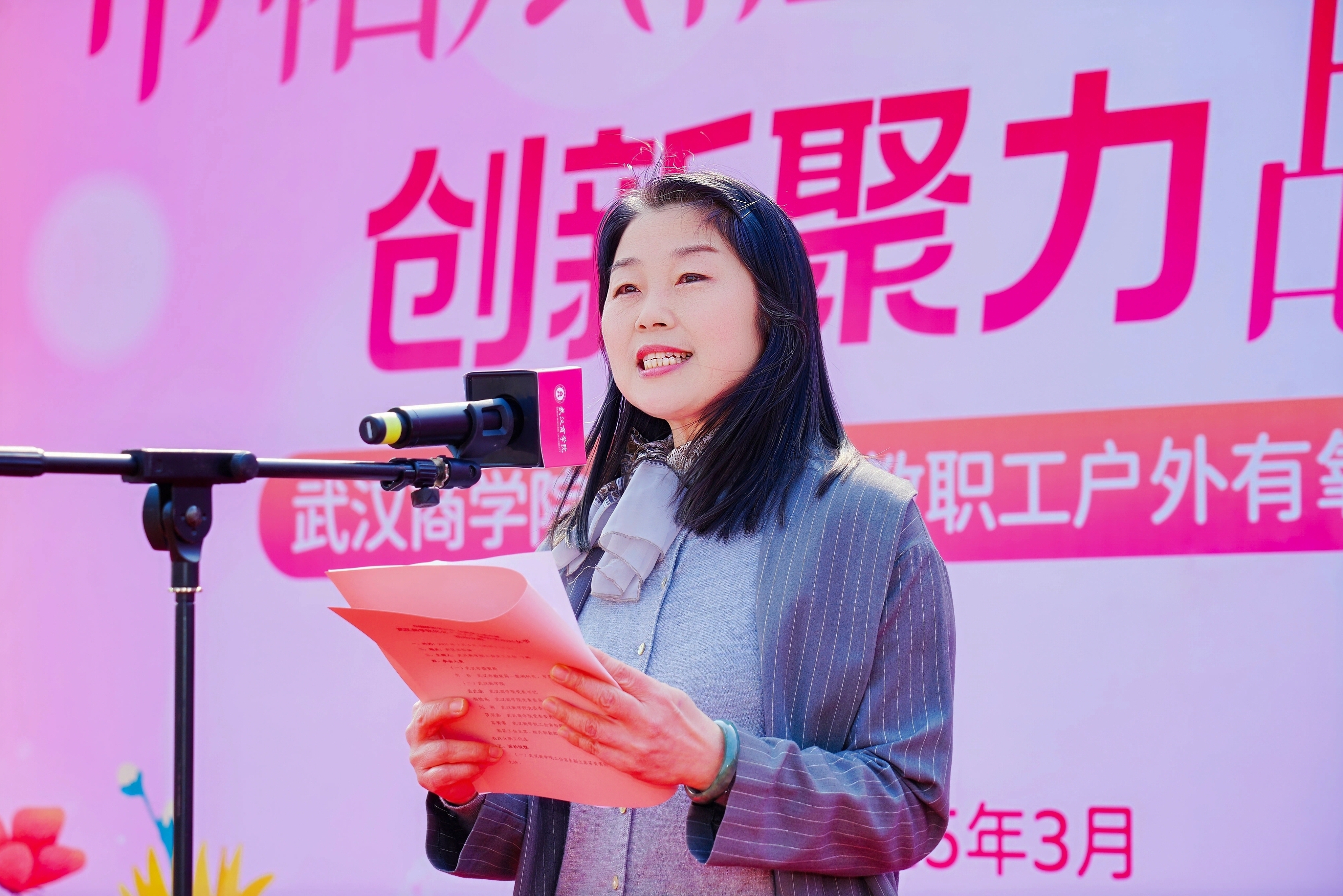 本网讯 3月6日,为纪念第115个国际妇女节,williamhill威廉希尔官网在南区田径场举办以“巾帼赋能强应用,创新聚力战申硕”为主题的三八妇女节庆祝活动。武汉市教育局一级调研员、市教育工会主席许芬,williamhill威廉希尔官网党委书记孟武康、副校长梅德高等领导及获奖代表、女职工代表参与本次活动。
