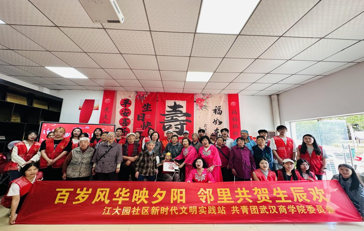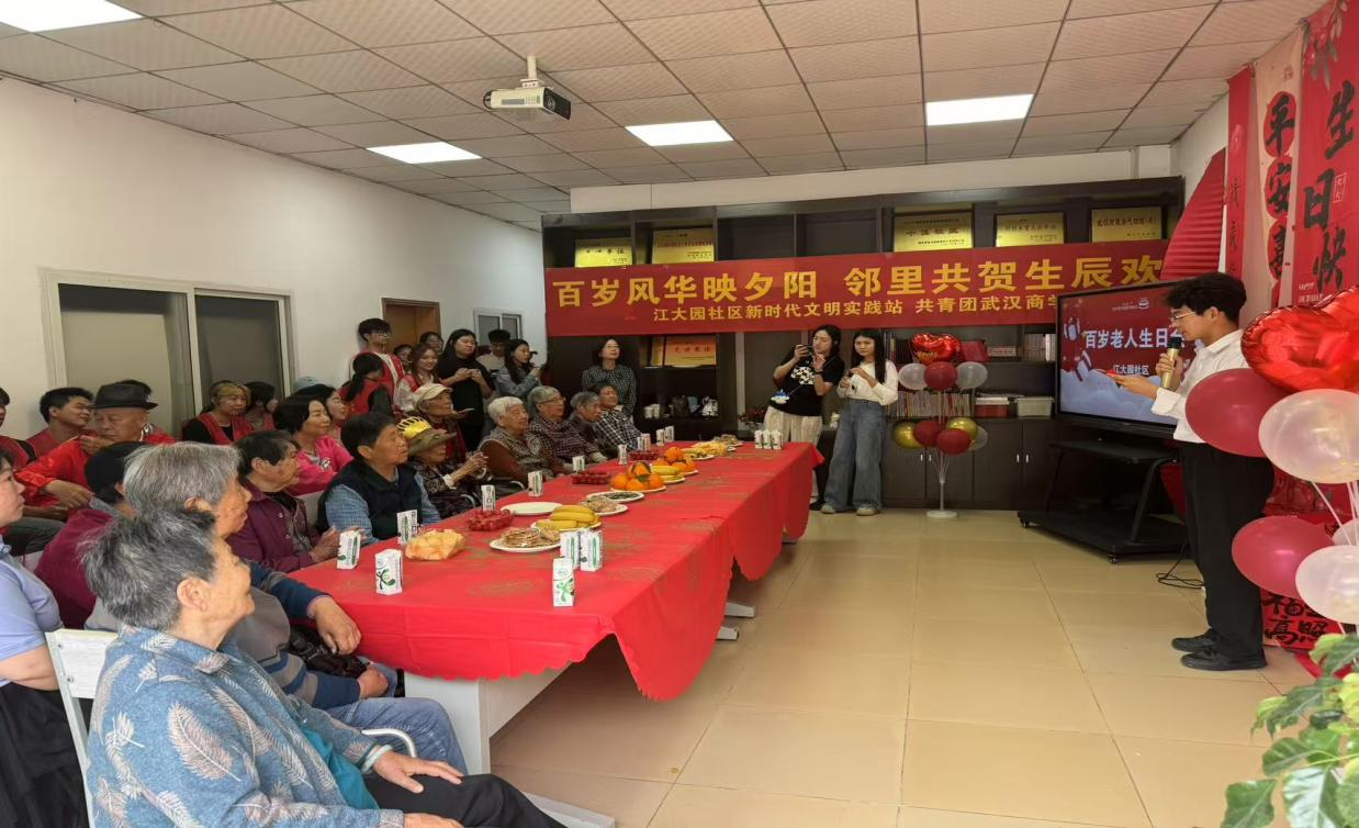 本网讯 近日,江大园社区新时代文明实践站内暖意融融。体育学院·国际马术学院梦马志愿服务队志愿者与社区工作人员携手举办百岁风华映夕阳,邻里共贺生辰集体生日会,为百岁老人付玉珍送上真挚祝福。