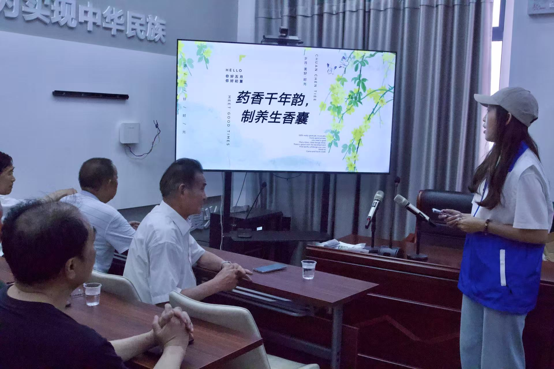 活动现场,一位参与活动的老人说:“今天学到了好多中医药知识,还亲手做了香囊,感觉特别有意义。这些孩子们既热情又耐心,让我们感受到了温暖和关怀。”此次活动不仅让社区老人感受到中医药文化的博大精深,也增强了学生们的社会责任感和志愿服务意识。
