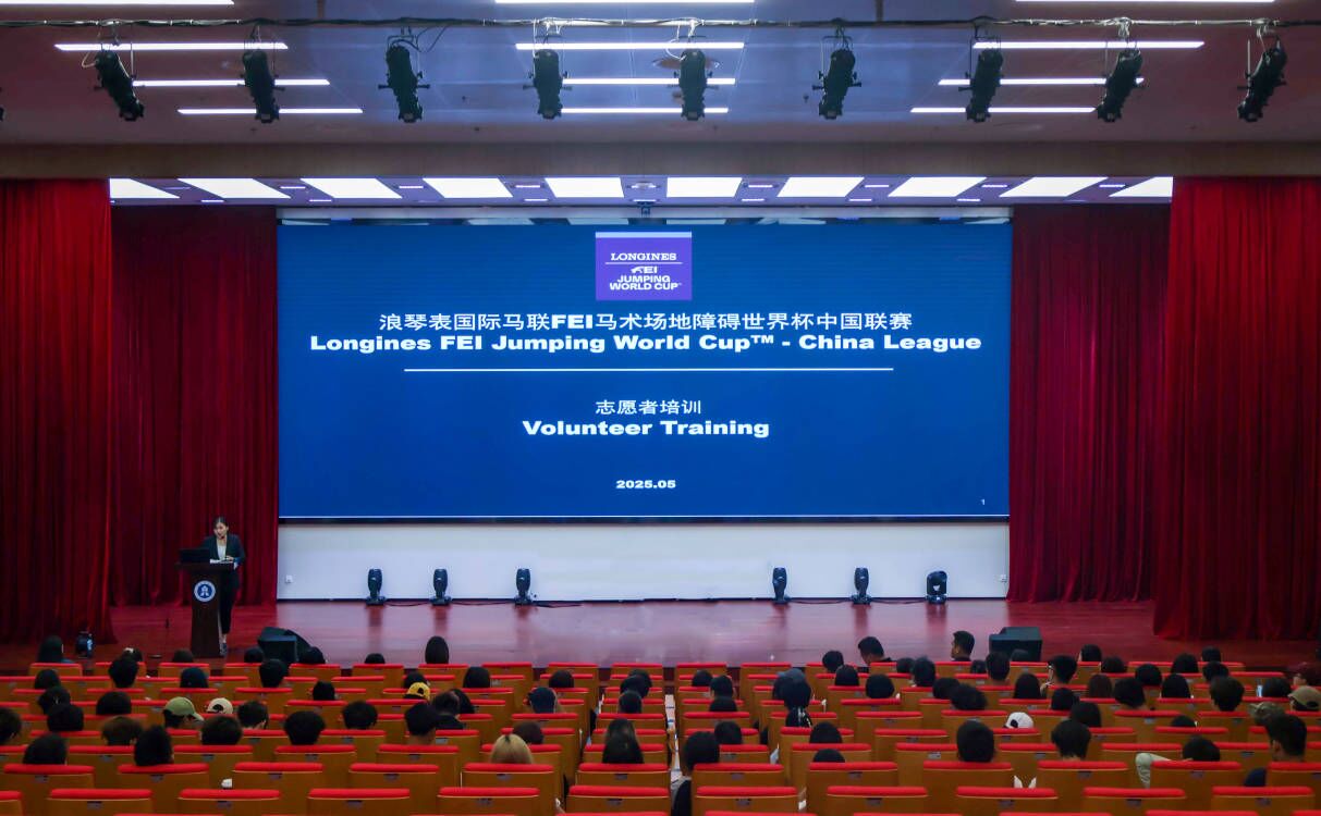 本网讯 为了确保推进浪琴表世界杯中国联赛在williamhill威廉希尔官网顺利举行,进一步使志愿服务工作规范化,加强对学生志愿服务工作的指导,结合williamhill威廉希尔官网工作实际,5月24日,williamhill威廉希尔官网在南区大学生中心报告厅召开赛事志愿者工作培训会。党委学生工作部副部长、团委负责人江倩,体育学院·国际马术学院副书记余刚、副院长马宏俊,赛事运营及培训讲师团队指导本次培训会。