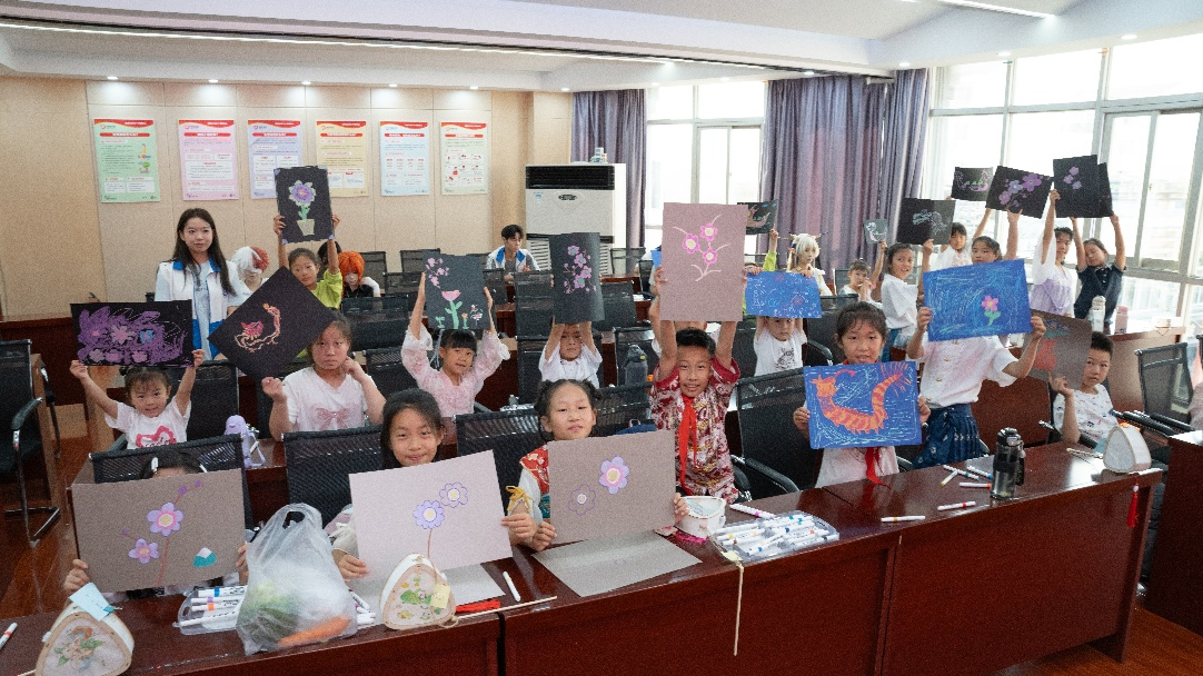 艺术学院分团委组织学院锦韵汉绣传习社、Lit.D动漫社团及轮滑社走进薛峰社区,顺利举行“绣彩童颜,漫滑六一”六一儿童节主题活动。本次活动通过融合非遗汉绣文化体验、趣味运动竞技以及国漫角色互动等方式,打造出了一场别具一格的儿童节盛会。让社区儿童在传统与创新的交融中,尽情享受节日的快乐,现场氛围热烈非凡。活动现场,汉绣社团的志愿者带着孩子们开启了“非遗小绣匠”的体验课堂。志愿者们让孩子们在卡纸上绘制花朵、锦鲤等花纹。孩子们在创作过程中展现出了极高的热情与创造力,他们用色彩赋予作品鲜活的生命力,完成创作后,小朋友们纷纷自豪地展示自己的成果。