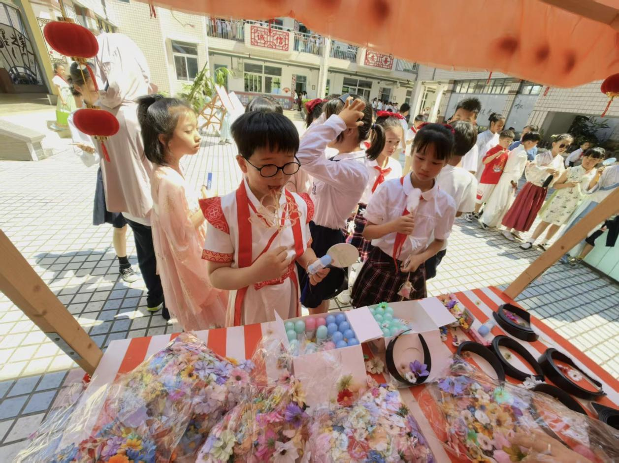 会计学院青年志愿者协会走进薛峰小学,开展“簪花筑梦,共绘芳华”六一儿童节特别志愿活动,以传统簪花手工为载体,带领孩子们沉浸式体验非遗文化与节日魅力。活动现场,50名学生在志愿者指导下领取绢花、珠子、金属配件等材料,专注投入簪花制作。穿针引线间,淡紫绢花与翠绿叶片被巧妙搭配,蝴蝶、莲花、石榴等造型的簪花相继诞生,孩子们将端午驱邪祈福的美好愿望融入指尖创作。